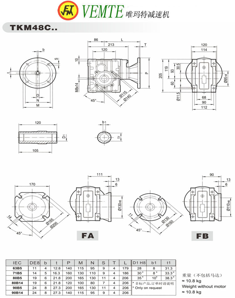 7.BKM075減速機安裝尺寸與TNRV系列蝸輪蝸桿減速器完全兼容(TKM28與TNRV050部分尺寸不同);