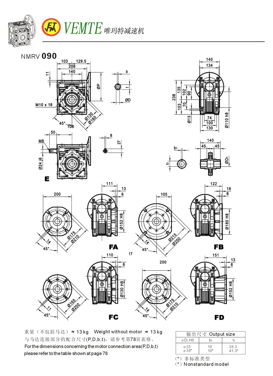 NMRV090減速機外殼:鋁合金(機座:025-105),鑄鐵(機座:110-130)。NMRV90減速機-技術參數: